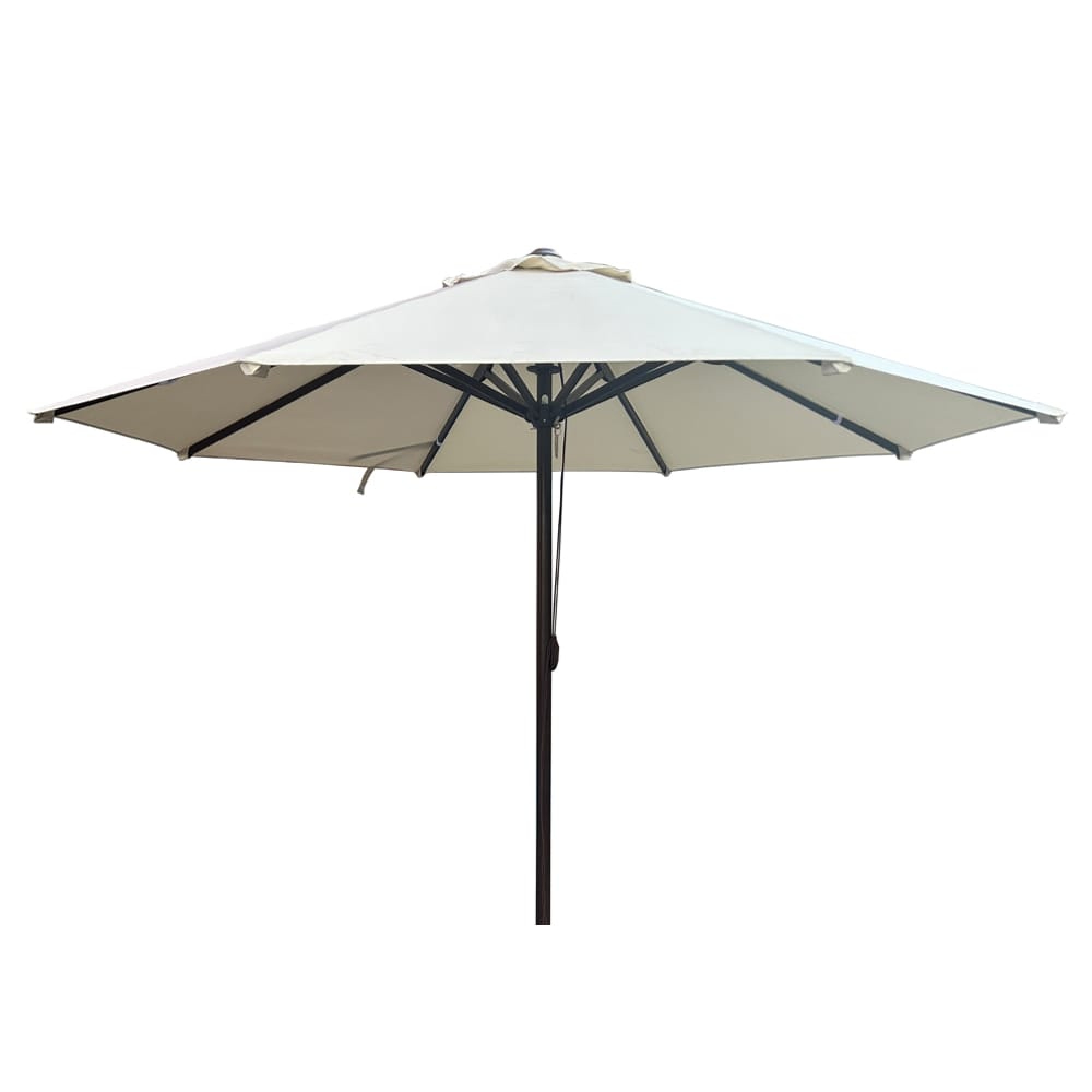Ομπρέλα κήπου delux αλουμινίου. Κατάλληλη για ελαφριά επαγγελματική και οικιακή χρήση, σκελετός αλουμινίου βαμμένος με καφέ ηλεκτροστατική βαφή, άξονας με ύψος 155cm, ορθοστατης 105cm, σκελετός 2 μερών 48mmx0,8mm, 8 ακτίνες από χάλυβα προφίλ 16mmx26mmx0,8mm.Ύφασμα polyester 280gr/m² μπεζ, μερικώς αδιάβροχο. Με εξαερισμό για την βέλτιστη αποσυμφόρηση του αέρα κατά την χρήση, μηχανισμός ανύψωσης με ράουλο. TREND