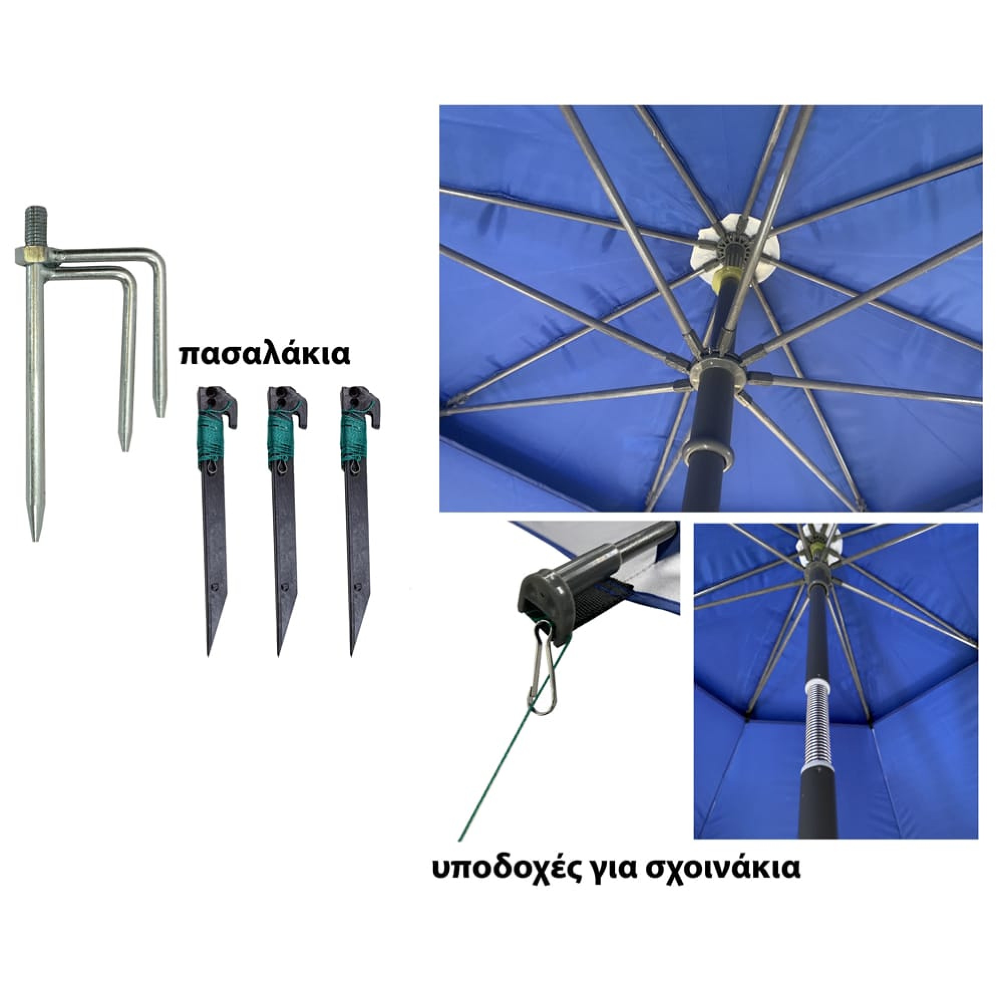 Ομπρέλα θαλάσσης fishing 220cm 8 ακτίνες μεταλλικό έλασμα polyester μπλε SOLART