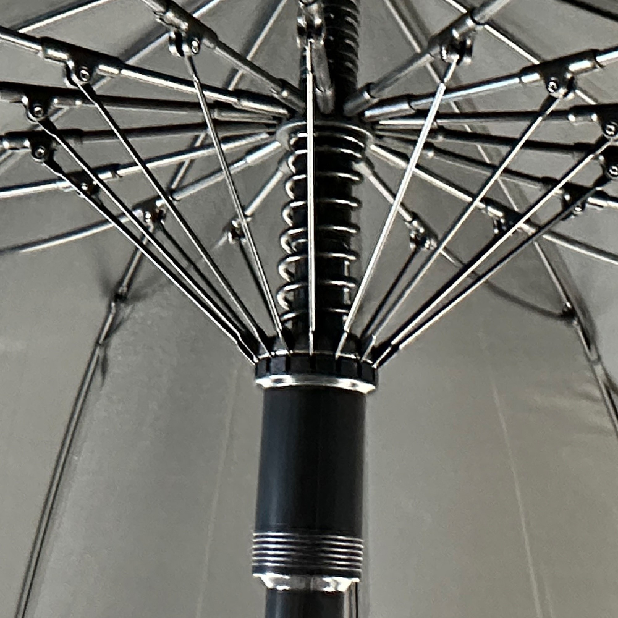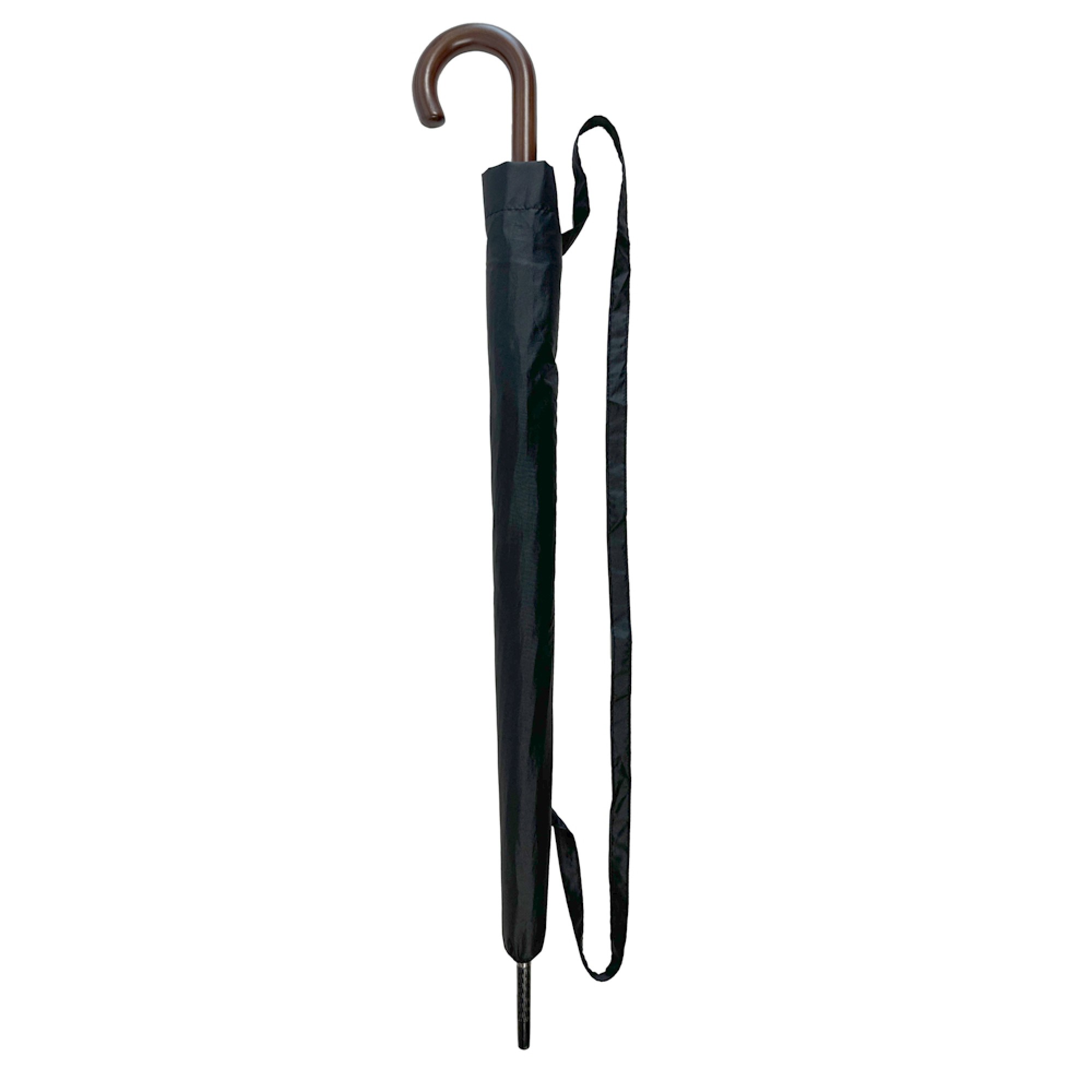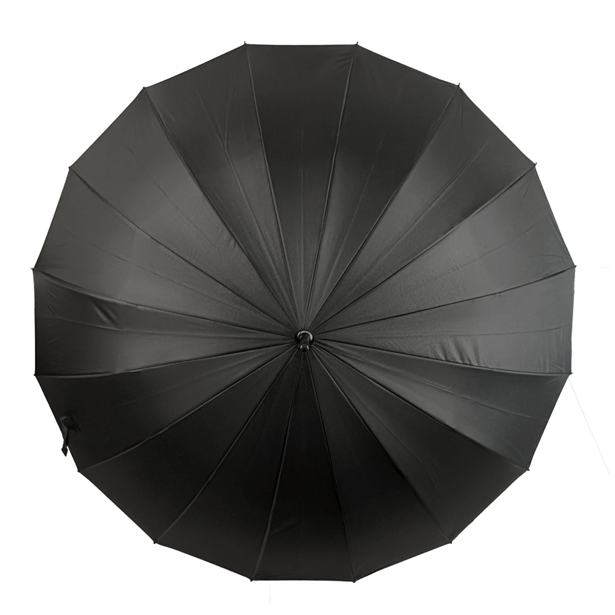 Ομπρέλα ανδρική μονοκόμματη με αυτόματο άνοιγμα, fiberglass σκελετό 14mm, 16 ακτίνες μήκους 68cm, αντιανεμική, διάμετρος ανοιχτής ομπρέλας ≈ 125cm, ύφασμα 100% polyester pongee μαύρο και λαβή με απομίμιση ξύλου μαγκούρα. KEVIN WEST