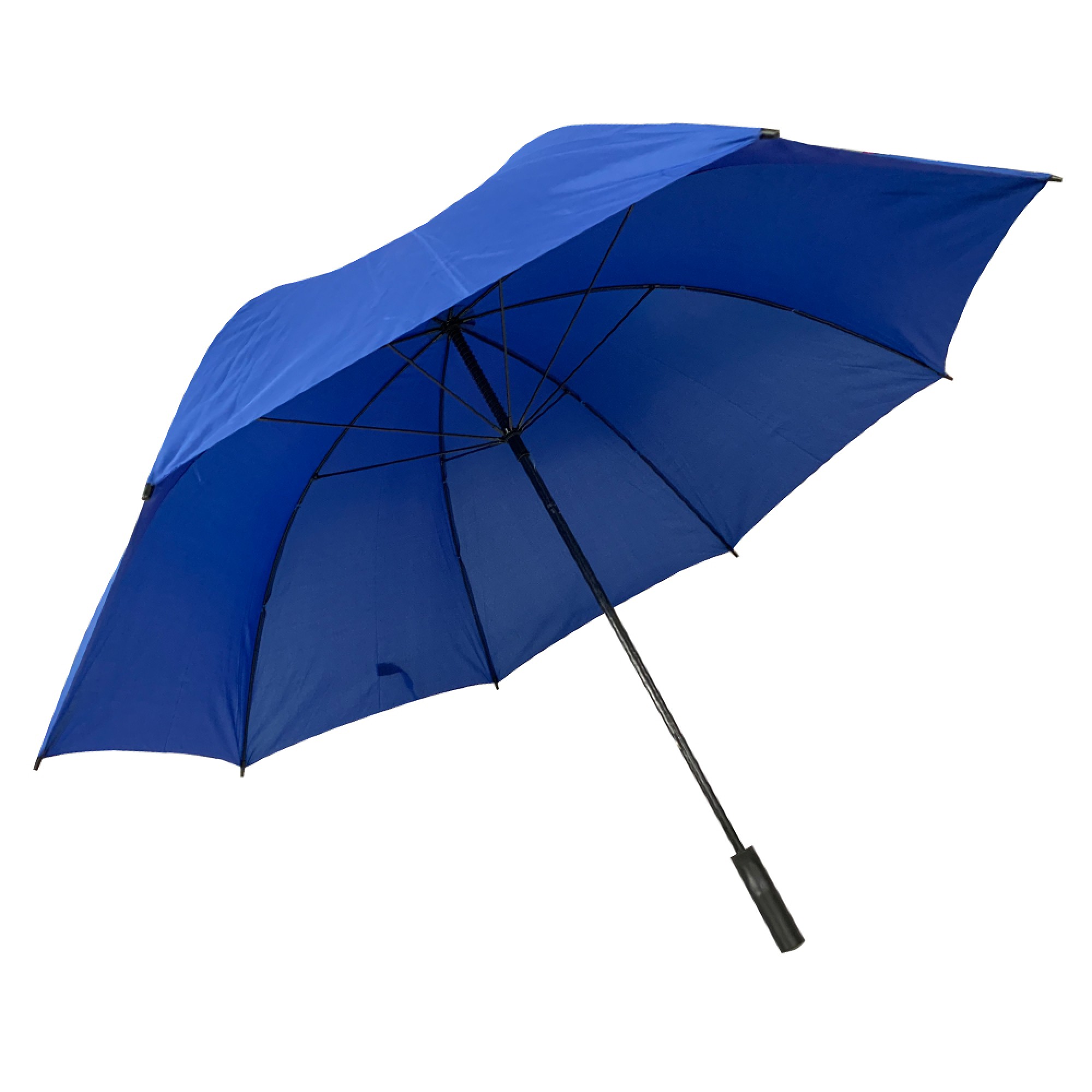 Ομπρέλα golf μονοκόμματη με χειροκίνητο άνοιγμα, μεταλλικό σκελετό 14mm, 8 ακτίνες μήκους 74cm fiberglass, διάμετρος ανοιχτής ομπρέλας ≈ 130cm, ύφασμα 100% polyester pongee μπλε και ίσια λαβή. TREND