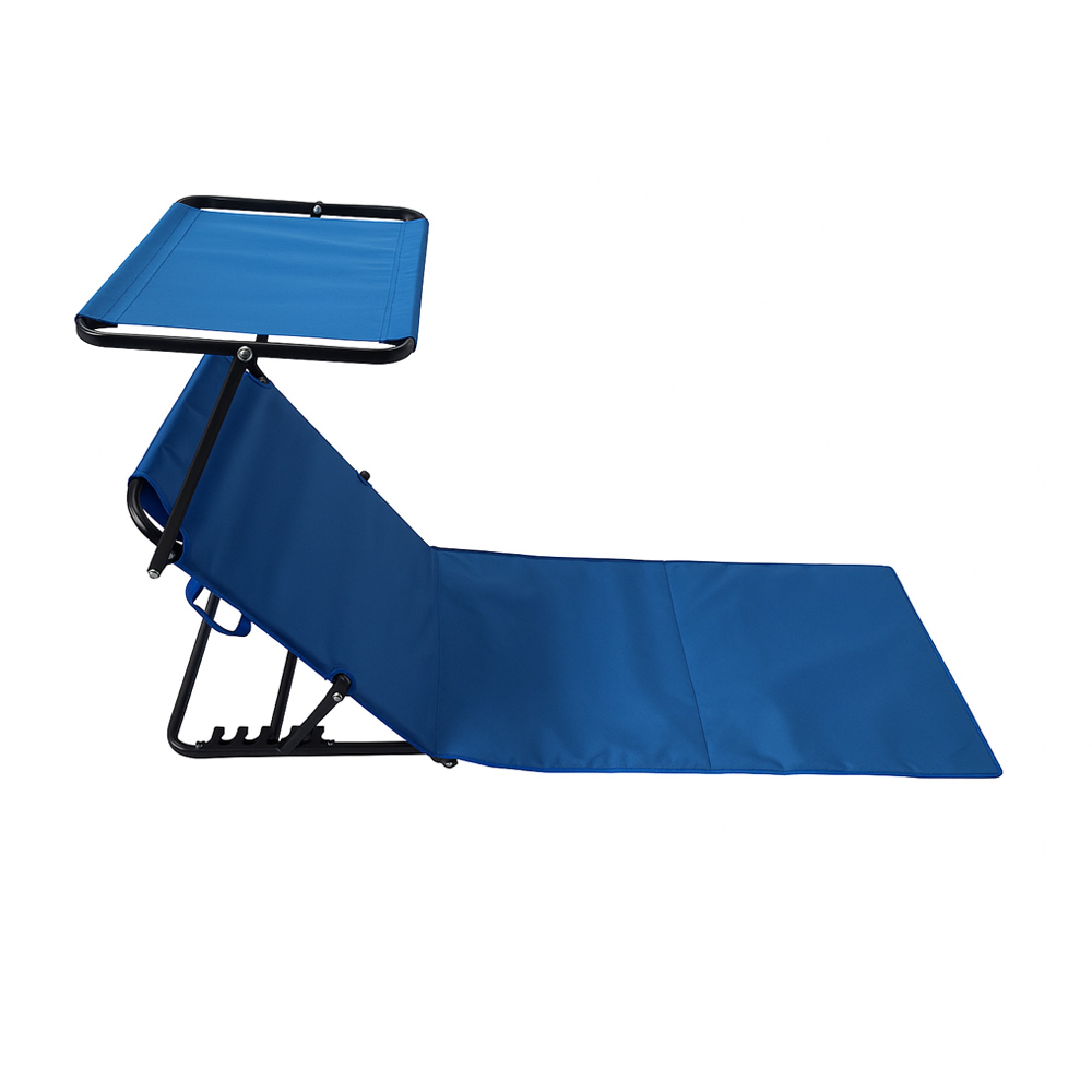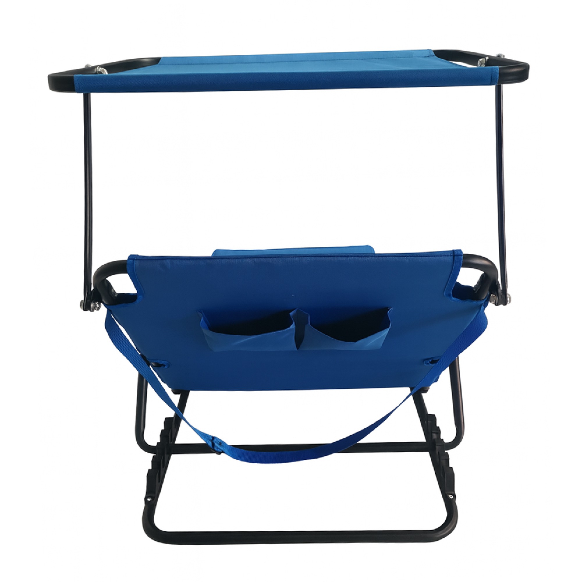 Ξαπλώστρα παραλίας αναδιπλούμενη. Διαστάσεις: 129x61x61cm. Σκελετός από ενισχυμένο ατσάλι Ø19mm x 0,8mm με μαύρη ηλεκτροστατική βαφή. Ανάκληση 4 θέσεων. Κατασκευασμένο από αδιάβροχο polyester 100%. Διαθέτει ρυθμιζόμενο σκίαστρο για προστασία από τον ήλιο. Μέγιστο στατικό βάρος 100kgr. Χρώμα μπλε. SOLART