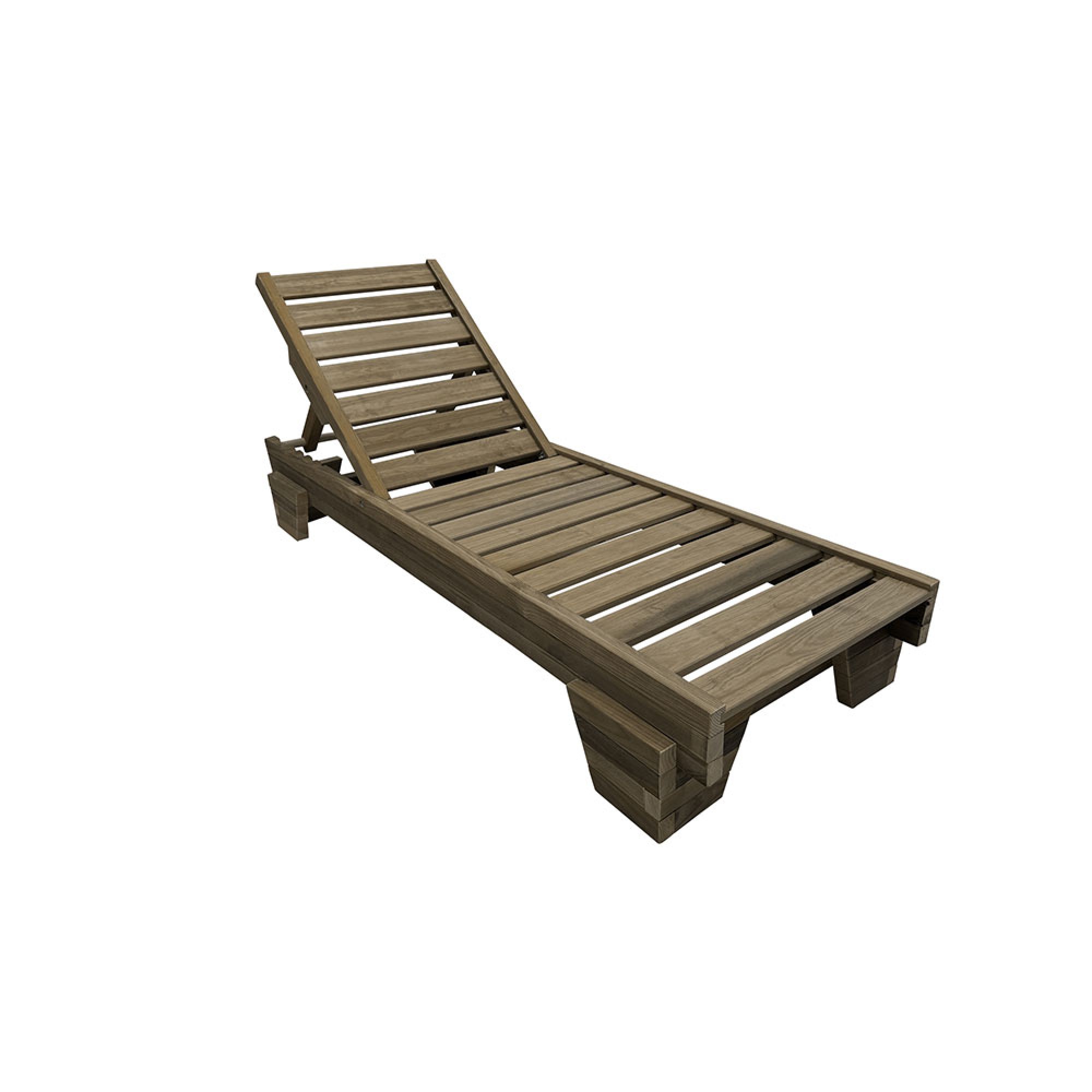 Ξαπλώστρα παραλίας διαστάσεων 200x68x27,50cm από εμποτισμένο μασίφ ξύλο σουηδικής πεύκης , κατάλληλη για επαγγελματική χρήση. Σκελετός από 3 ενισχυμένες πλάγιες δοκούς διαστάσεων 13,00x3,6cm με πατούρα επί των οποίων στερεώνονται με ανοξείδωτους συνδέσμους σανίδες 9,5x2,1cm με ραβδώσεις με μεταξύ τους απόσταση 2,1cm. Εργονομική πλάτη 6 θέσεων κλίσης, μήκους 80cm με πλάγιους δοκούς διαστάσεων 4,7x3,7cm. Ενισχυμένα μη αποσπώμενα πόδια (σταθερά) διαστάσεων 25,00x14,50cm. Βίδες Inox πάχους 8mm με παξιμάδι ασφαλείας.Σημείωση: Η ξαπλώστρα παραδίδεται αποσυναρμολογημένη.Διαστάσεις πακέτου:που περιλαμβάνει και 4 πόδια, 2 ξύλινες μπάρες, και 12 ανοξείδωτες βίδες: 200x68x27,50cm Βάρος: 25kg